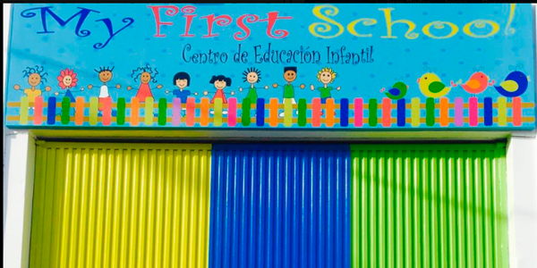 Mamen y Estefanía querían cambiar la imagen de entrada a su escuela infantil. Hablamos, hablamos y hablamos un poco más, muchas ideas, algunos cambios, y el resultado, creo que fué bastante bueno